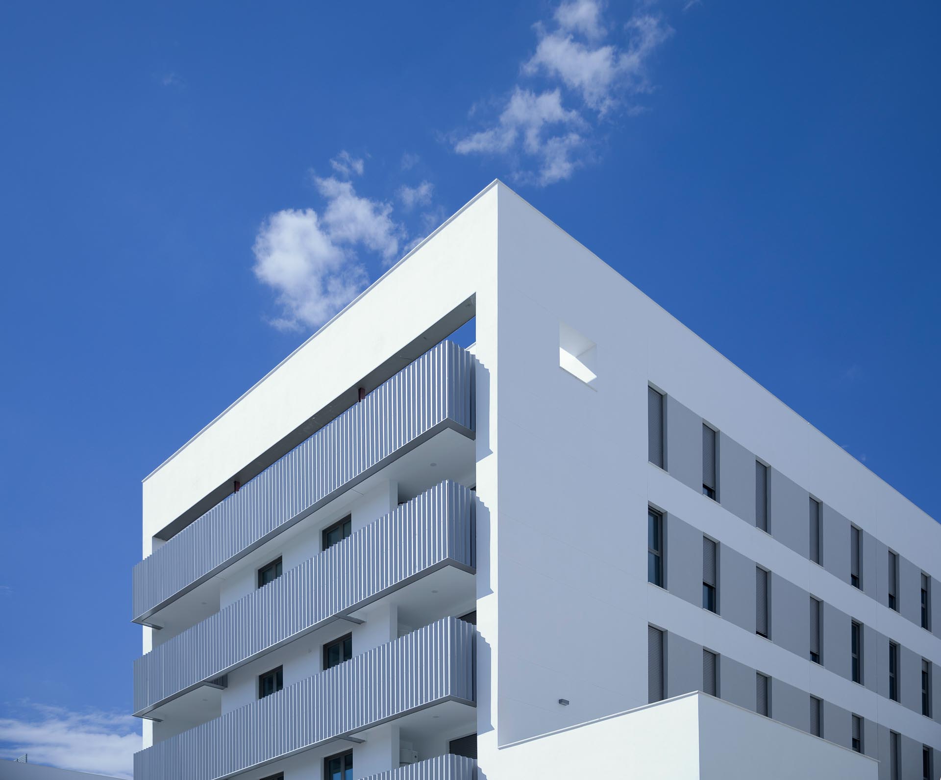 El conjunto ha sido diseñado para ofrecer una experiencia residencial eficiente y confortable, con especial atención a la calidad del ambiente interior y la sostenibilidad. La envolvente del edificio limita la demanda energética y mejora el comportamiento térmico, mientras que el aislamiento acústico garantiza el confort en cada vivienda. Además, se incorporan sistemas de iluminación eficientes y soluciones de energía solar, que refuerzan el compromiso del proyecto con la eficiencia y el respeto medioambiental.